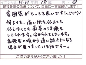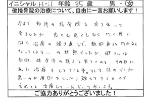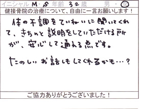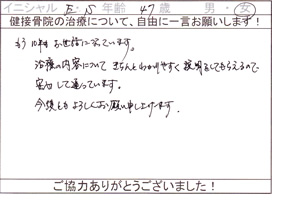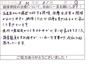 ご来院された患者様から、貴重なご意見・ご感想をいただきましたのでご紹介いたします。